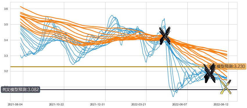 ➣ 60小时均线于(2022-04-22: 3.414)形成【死叉】基于【死叉历史模型】预测死叉后最低波谷价格: 3.197, 死叉后最低价格3.010,已经下跌超出预测最低波谷价格, 预期反弹