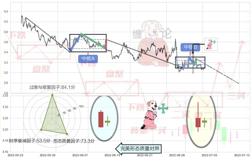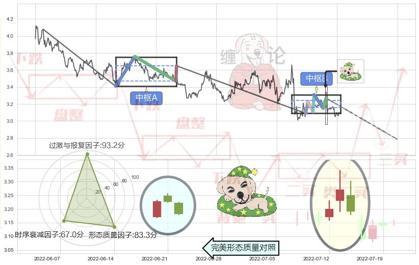 ➢ 【中枢B】:2022-05-25-2022-07-13,中枢由6笔构成,共35交易日, ZG=3.230, ZD=3.150
