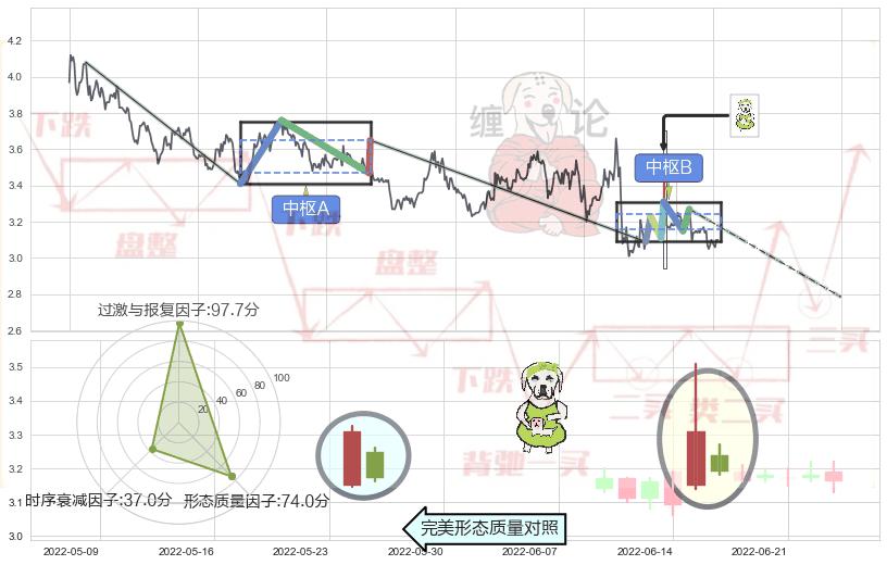 ➢ 下跌身怀六甲 🔜 缠论中枢点破位中枢B支撑下拉 综合量化分数:44.37 【偏空】