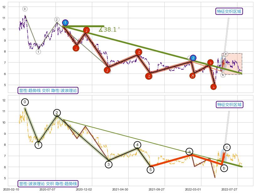 ➣ ['回调abc识别为: 【锯齿型调整浪】 ', '锯齿型:子浪535结构 ⓑ点振幅较小,ⓒ点继续发力远超ⓐ点结束位置']