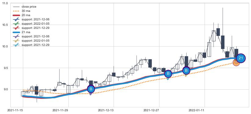 📝 多条均线形成死叉后走势最低价格达到: 10.25