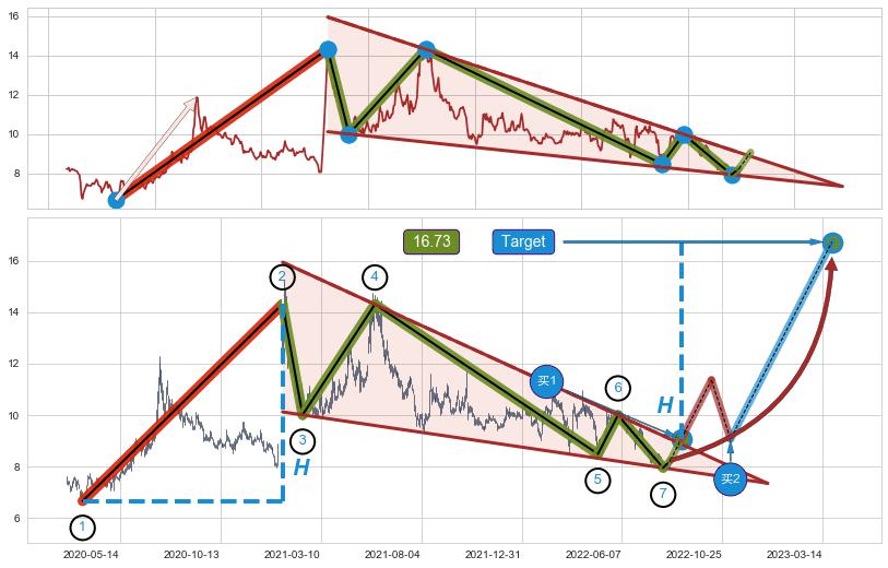➣ AI预测: 假定反转启动后, 第❸目标位置(2023-11-23, 7.95)