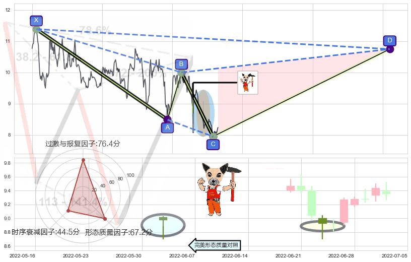 ➢ 曙光初现形态 🔜 谐波赛福下沉击穿c上涨拐点 综合量化分数:54.33 【偏多】