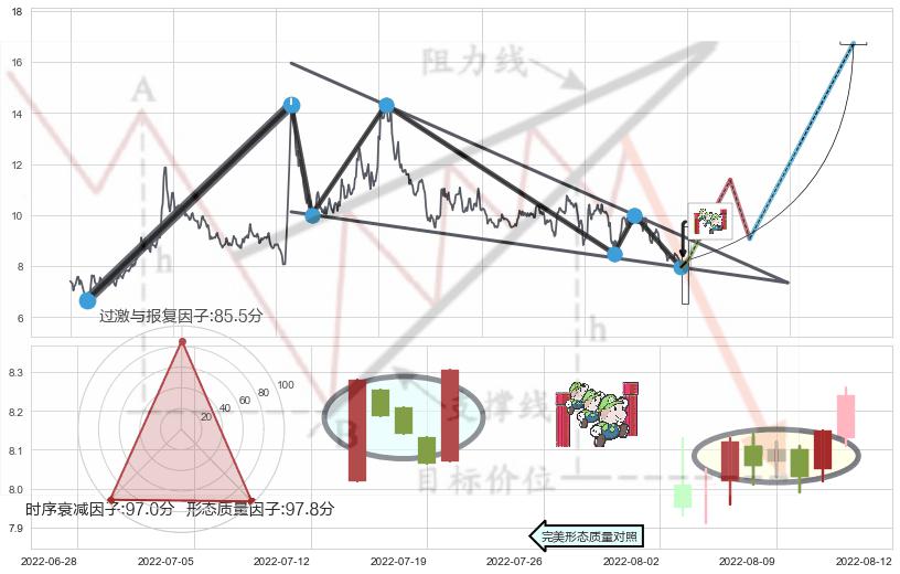 ➢ 🕰 价格走势在2022-08-05至2022-08-11期间形成上升三部曲(升势三鸦),残存影响值:4.87