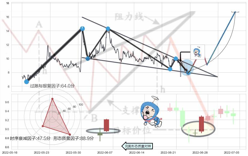➢ 🕰 价格走势在2022-06-24至2022-06-27期间形成上涨螺旋桨形态,残存影响值:5.67