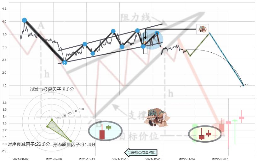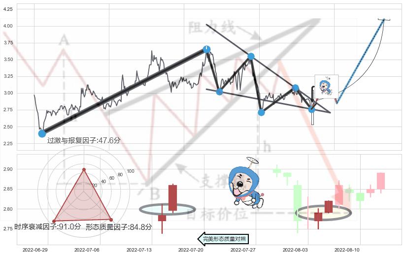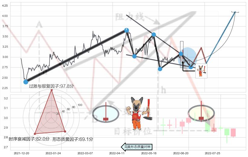 ➢ 【买1】: 激进型 买点 →(2022-08-12: 2.849 )形成突破降🚩楔型【整理】形态
