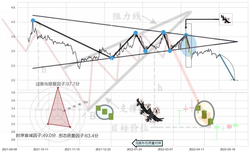 ➢ 【卖1】: 激进型 卖点→(2022-04-20: 3.109 )形成突破下降【对称】三角形整理【整理】形态