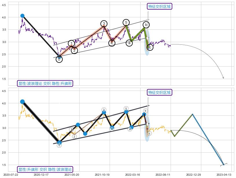 ➢ 波浪理论与升旗形信号事件周期长度级别相同,同周期信号事件