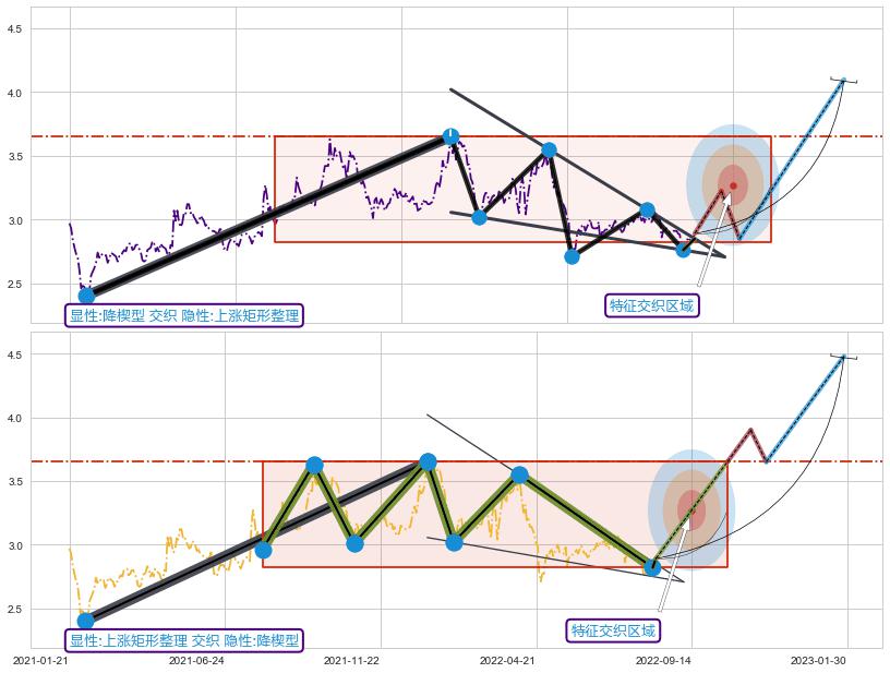 ➣ 循环浪继续向上【平均值】位置(2023-03-15, 3.921),匹配聚类样本比例52.33%, 可能性概率22.98%