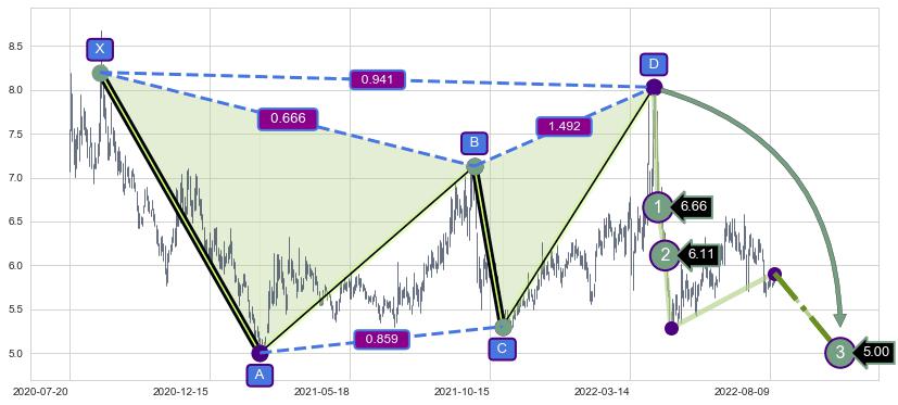 ➣ 已完成【伽利】形态起点X: 2020-08-19, 终点D: 2022-04-08, 共396交易日