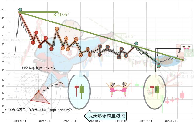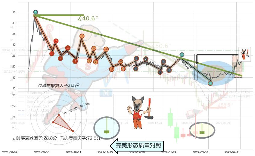 从2020-07-24至2022-06-15,共包含458个交易日,阶段股价下跌-76.05%,阶段股价变动位移路程比: 1 : 11,下跌趋势角度: 40.6