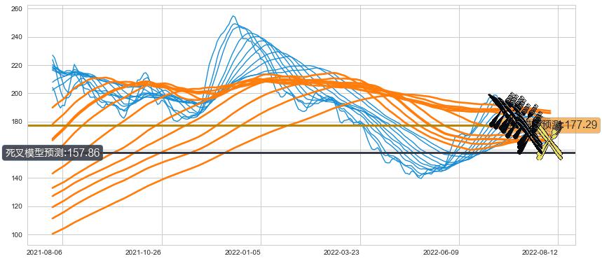 ➣ 34小时均线于(2022-07-18: 183.59)形成【死叉】基于【死叉历史模型】预测死叉后最低波谷价格: 166.93, 死叉后最低价格161.73,已经下跌超出预测最低波谷价格, 预期反弹