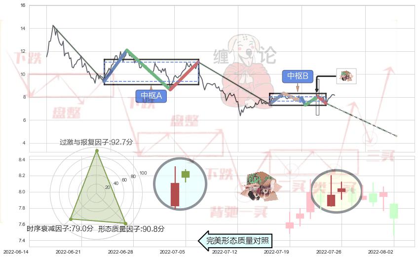 ➣ 【中枢B】:2022-06-01-2022-08-03,中枢由7笔构成,共45交易日, ZG=7.93, ZD=7.63