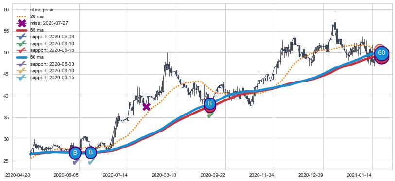 📝 多条均线形成金叉后走势最高价格达到: 64.45