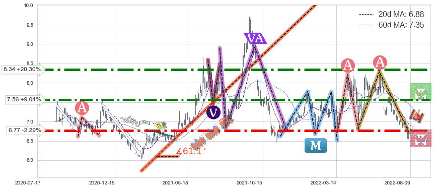 ♘ 阻力价格位7.56,可信任强度84.20%,距离最后交易2022-08-12形成的收盘价格6.93相差 +9.04%