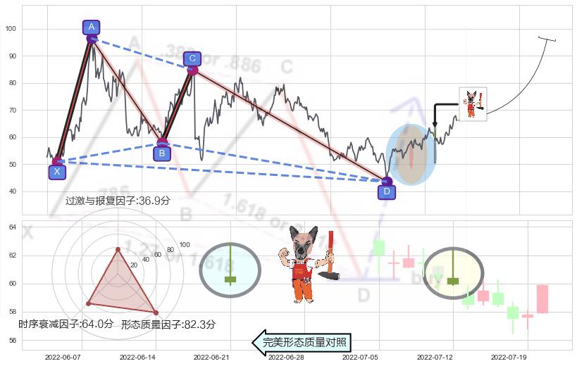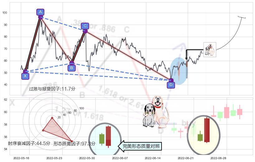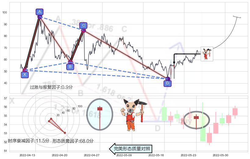 ➢ 锤头线(锤子线) 🔜 谐波蝴蝶d拐点上涨支撑 综合量化分数:54.13 【偏多】