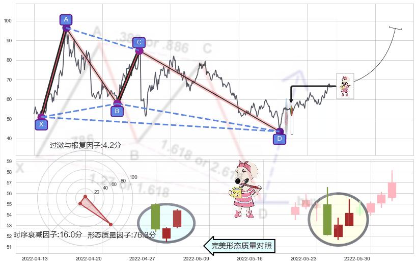 ➢ 阳包阴形态 🔜 谐波蝴蝶d拐点上涨支撑 综合量化分数:55.20 【偏多】