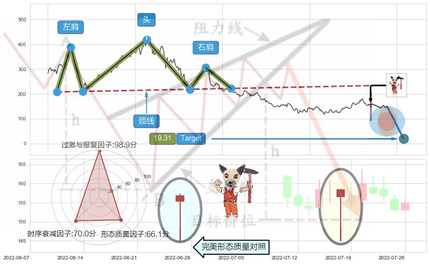 ➢ 锤头线(锤子线) 🔜 头肩顶临近target支撑拐点上涨 综合量化分数:57.47 【偏多】