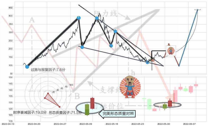 ➢ 🕰 价格走势在2022-06-15至2022-06-16期间形成上涨螺旋桨形态,残存影响值:4.08