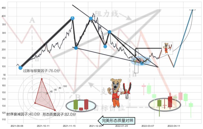 ➢ 🕰 价格走势在2022-04-11至2022-04-18期间形成双针探底,残存影响值:4.40