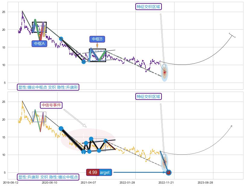 ➣ 单针探底(定海神针) + 缠论中枢点下降缠临近1买反弹点信号叠加后【目标达成率】极低,【看多】信号叠加【存续影响极大】