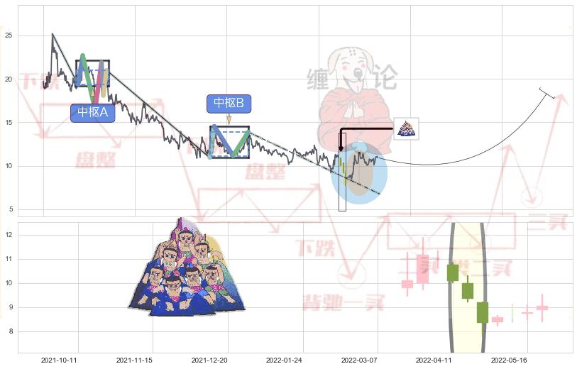 ➣ 缠论中枢点:猜想即将止跌 → 上涨 →【拐点】1买临近 → 大趋势均值回复