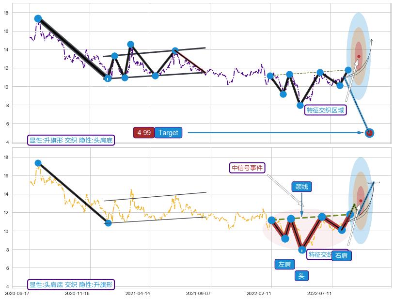 ➣ 锤头线(锤子线) + 升旗形临近target支撑拐点上涨信号叠加后【目标达成率】中等,【看多】信号叠加【存续影响中等】