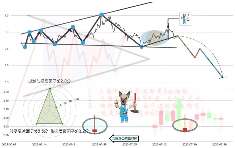 ➢ 下降插入线(坠落线) 🔜 扩散三角反转临近支撑猜想转换阻力下跌 综合量化分数:44.93 【偏空】