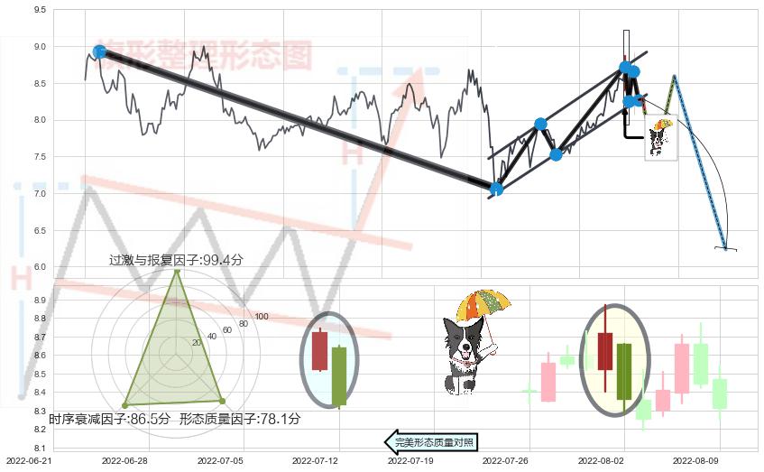 ➢ 🕰 价格走势在2022-08-02至2022-08-08期间形成下降三部曲(降势三鹤),残存影响值:-6.60