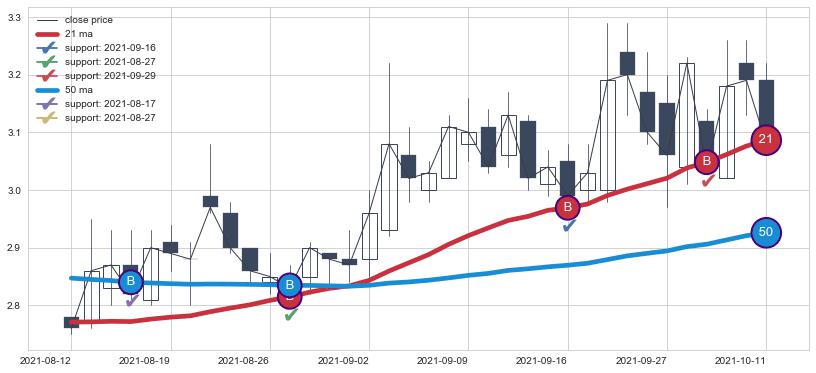 📝 多条均线形成死叉后走势最低价格达到: 2.840