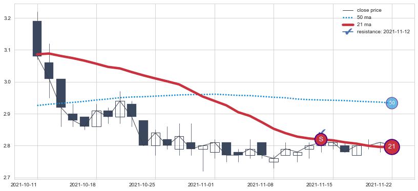 ➣ 21小时均线于(2022-07-29: 3.112)形成【死叉】基于【死叉历史模型】预测死叉后最低波谷价格: 2.971, 死叉后最低价格2.840,已经下跌超出预测最低波谷价格, 预期反弹