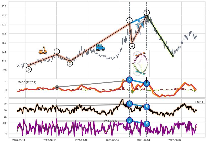 ➣ MACD, RSI, KDJ走势都出现【常规背离】反转信号增强