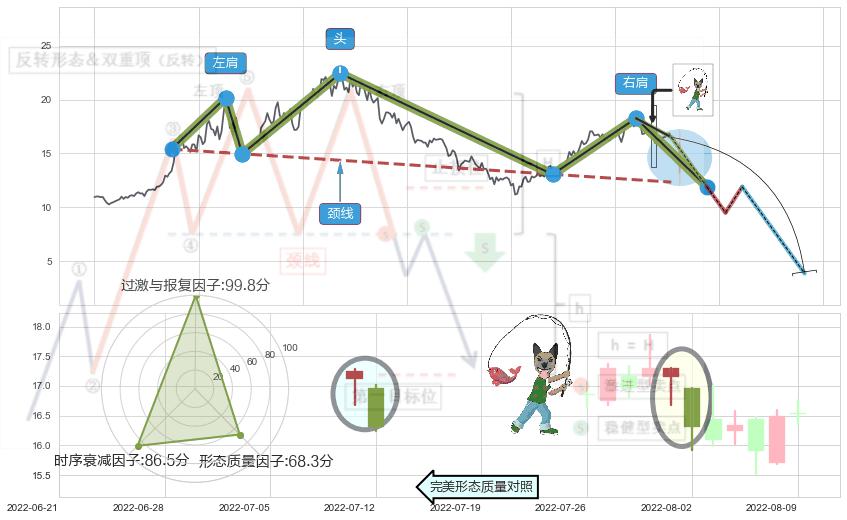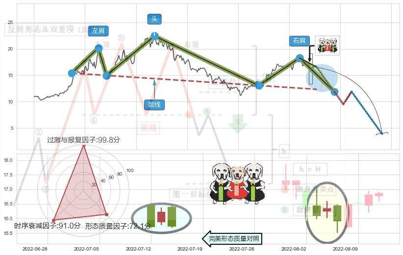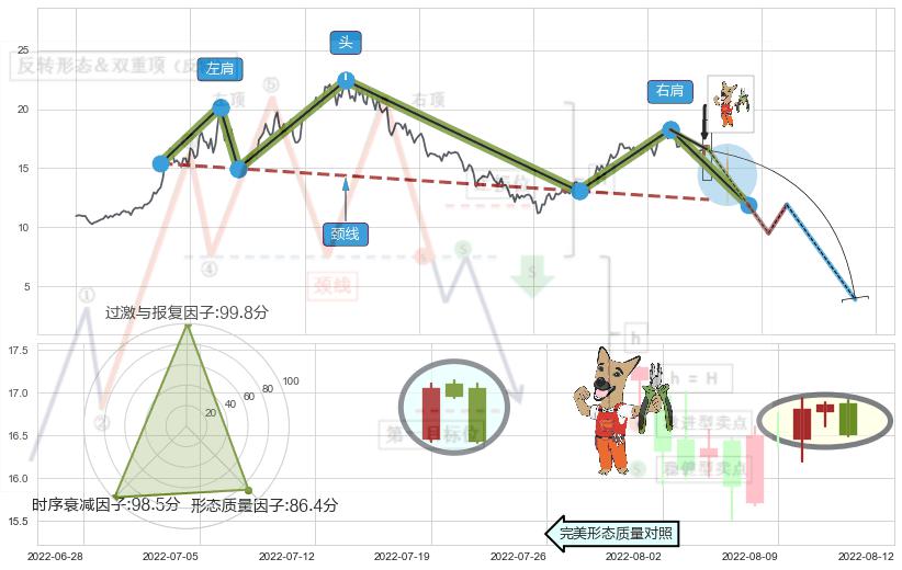➢ 🕰 价格走势在2022-08-01至2022-08-02期间形成吊颈线(上吊线),残存影响值:-4.22