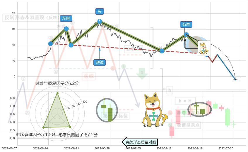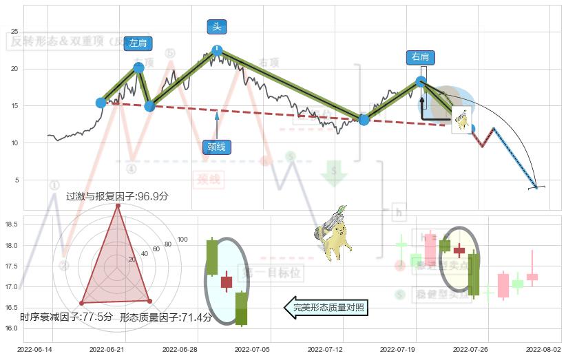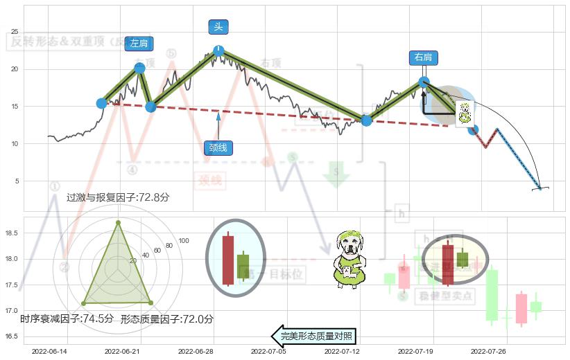 ➣ 【未确认突破,预测即将形成突破】头肩顶起点:2021-07-05, 预测突破点:2022-09-06,形态共288交易日