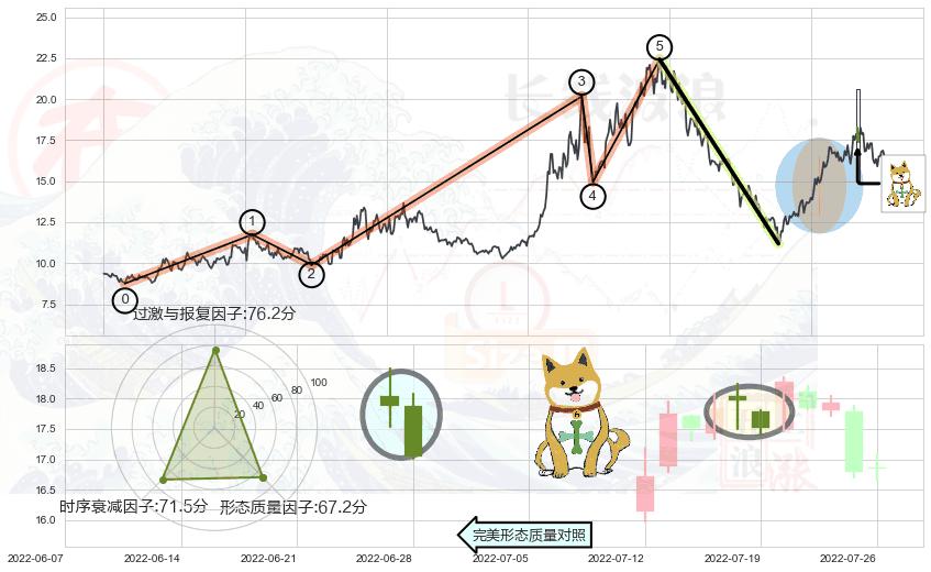➢ 🕰 价格走势在2022-07-21至2022-07-25期间形成空方炮,残存影响值:-1.72