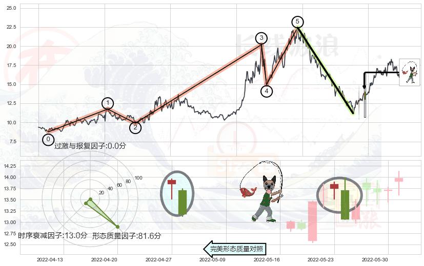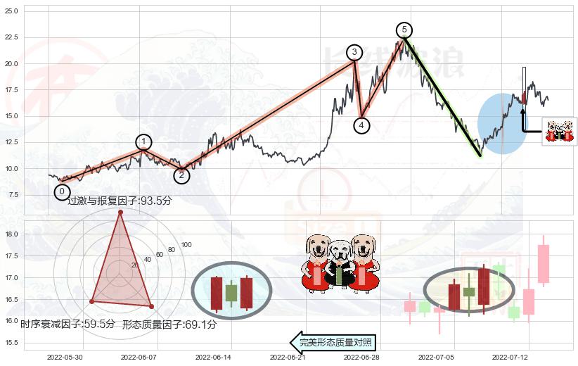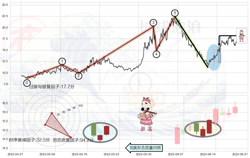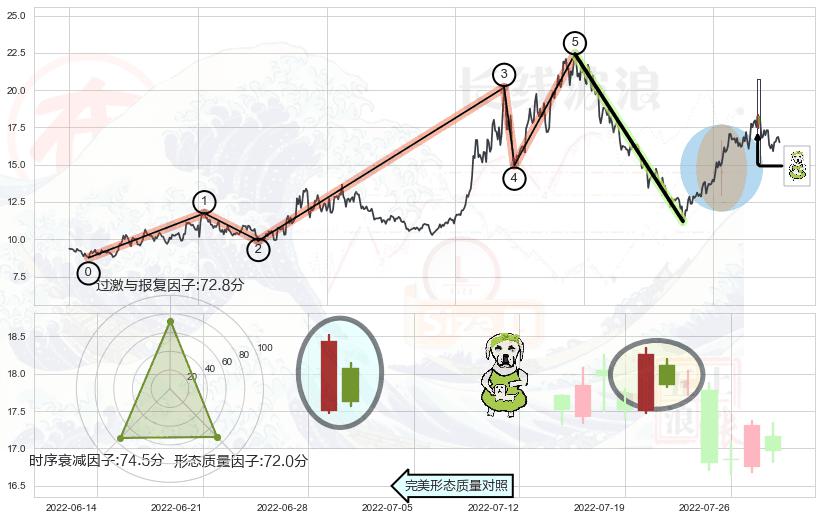 ➢ 🕰 价格走势在2022-06-23至2022-06-23期间形成锤头线(锤子线),残存影响值:5.08