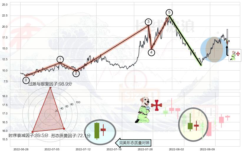 ➢ 🕰 价格走势在2022-08-03至2022-08-05期间形成两黑夹一红,残存影响值:-4.39