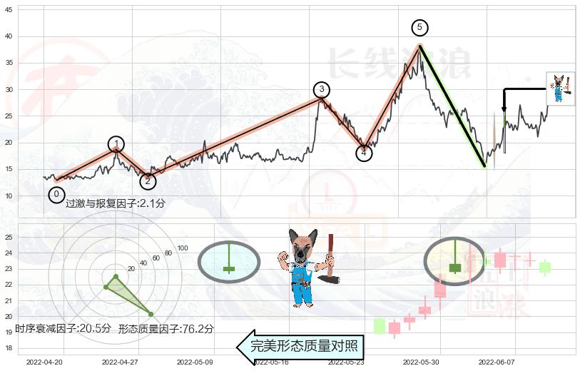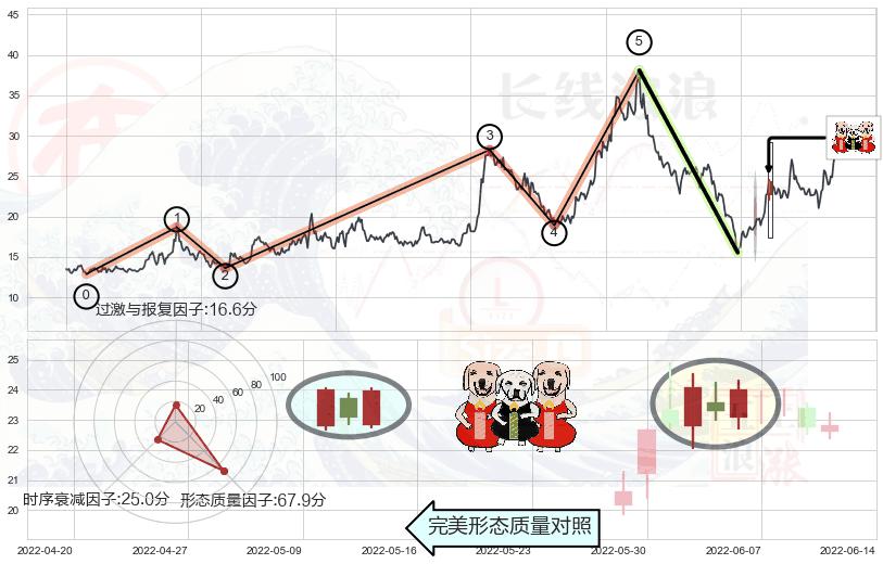 ➢ 🕰 价格走势在2022-06-15至2022-06-17期间形成早晨之星(黎明之星),残存影响值:2.29