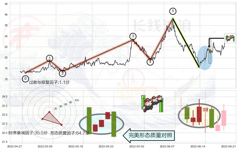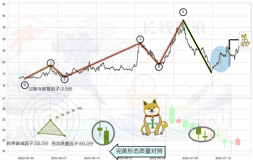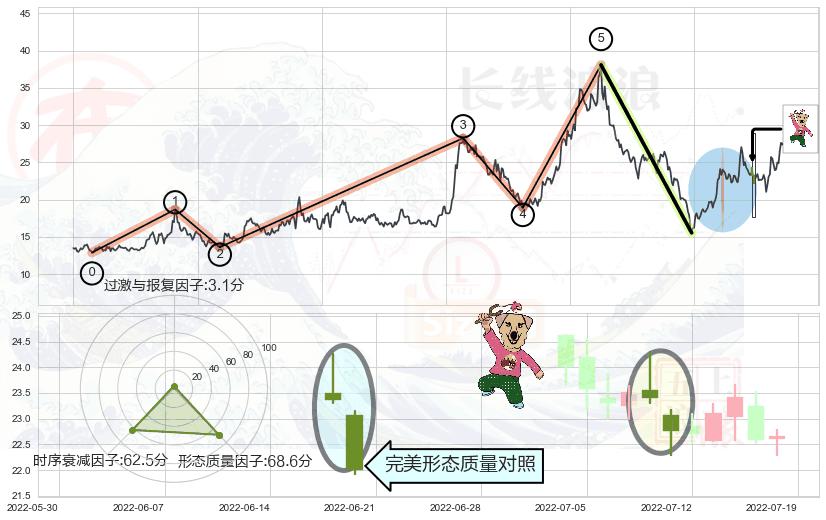 ➢ 🕰 价格走势在2022-06-20至2022-07-04期间形成黄昏之星(夜星),残存影响值:-7.34