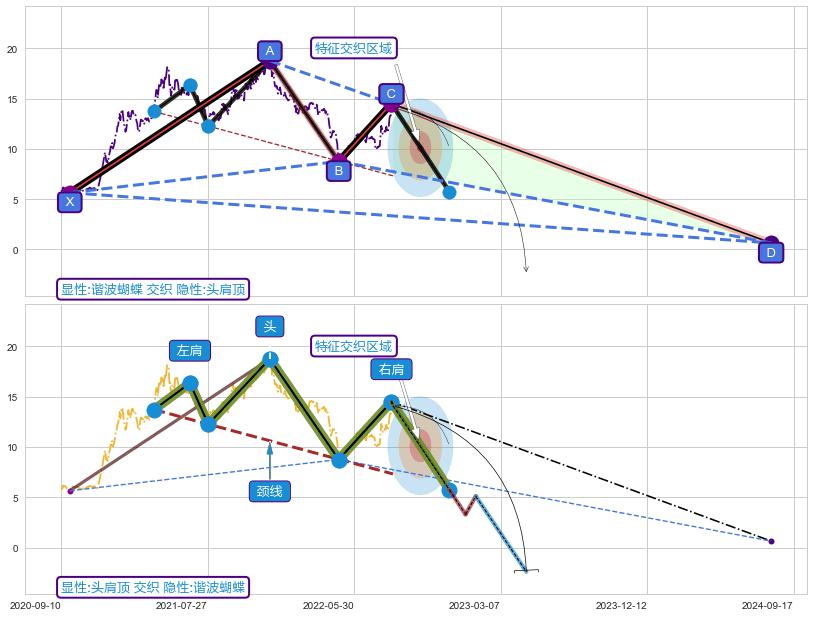 ➢ 谐波蝴蝶与头肩顶信号事件周期长度级别相同,同周期信号事件