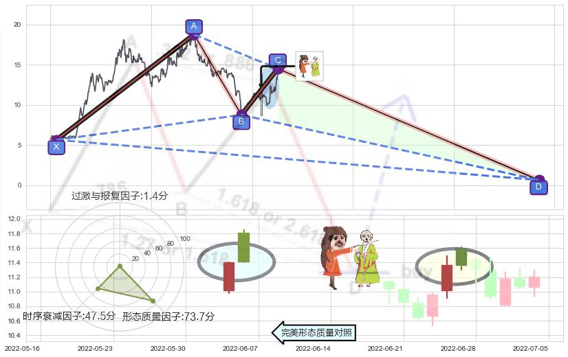 ➢ 🕰 价格走势在2022-07-06至2022-07-08期间形成两黑夹一红,残存影响值:-1.73
