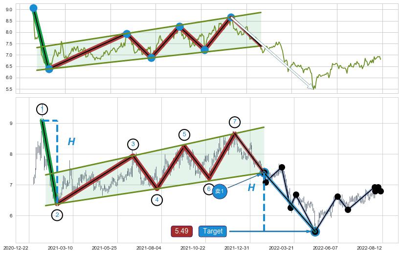 ➣ 最小中继整理跌幅→𝐇: 2.700 (𝐇旗杆的长度:旗杆起点→顶点)