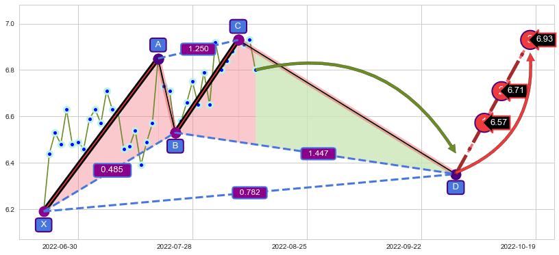 ➣ 未完成【赛福】形态起点X: 2022-06-22, 已到达C点: 2022-08-09, 预测最终D点: 2022-09-30, 共73交易日