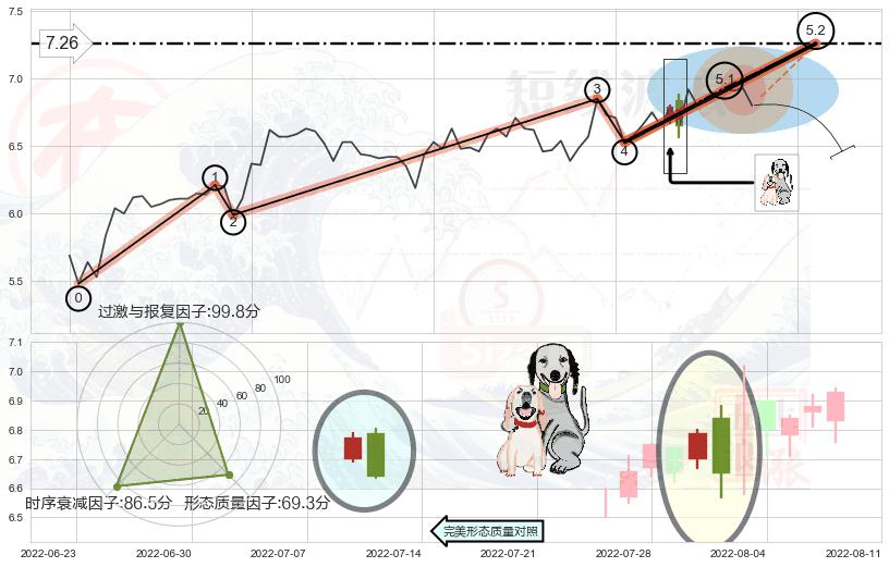 ➢ 🕰 价格走势在2022-08-05至2022-08-11期间形成低档五阳线,残存影响值:6.20