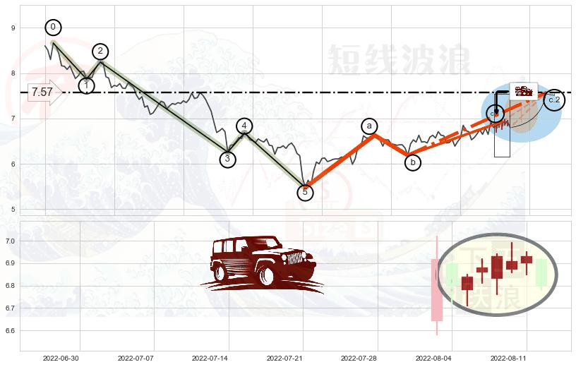 ➣ c.1: 当前c浪回调位置(2022-08-09, 6.93),仍然有回调空间