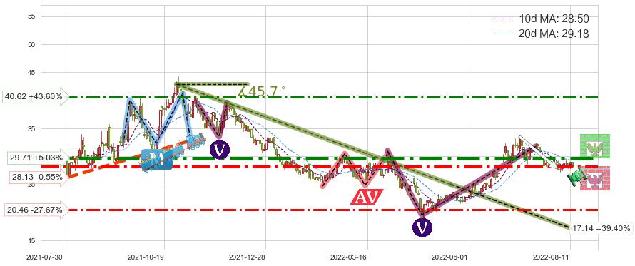♘ 阻力价格位29.71,可信任强度85.71%,距离最后交易2022-08-12形成的收盘价格28.29相差 +5.03%