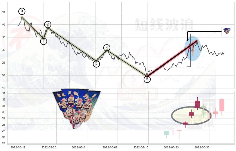 ➣ AI预测: 假定反转启动后, 第❸目标位置(2023-06-21, 19.56)
