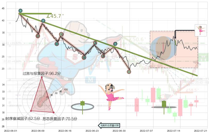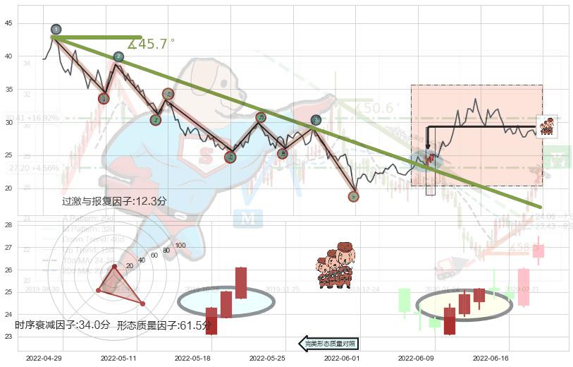 ➢ 2021-10-27-2022-05-19下跌趋势存在反转上涨[机会],其原下跌趋势的阻力位(17.14)已被突破[强支撑信号],原下跌趋势角度: 45.7˚