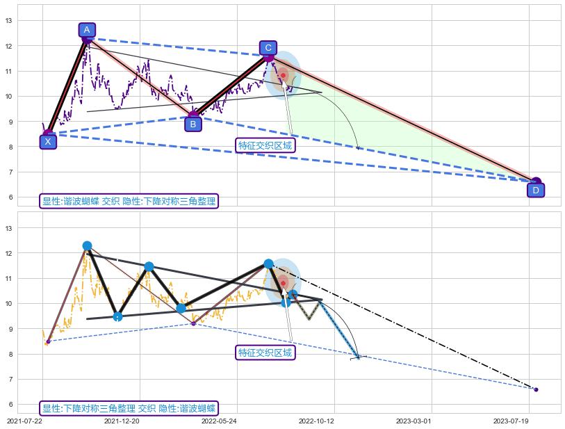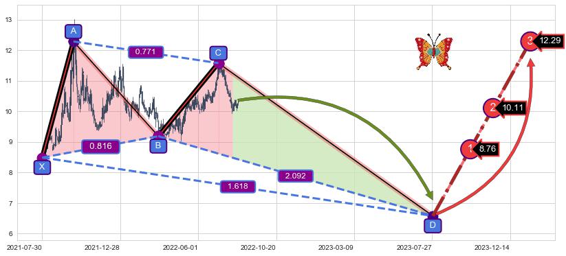 ➣ 未完成【蝴蝶】形态起点X: 2021-07-30, 已到达C点: 2022-07-08, 预测最终D点: 2023-07-28, 共495交易日