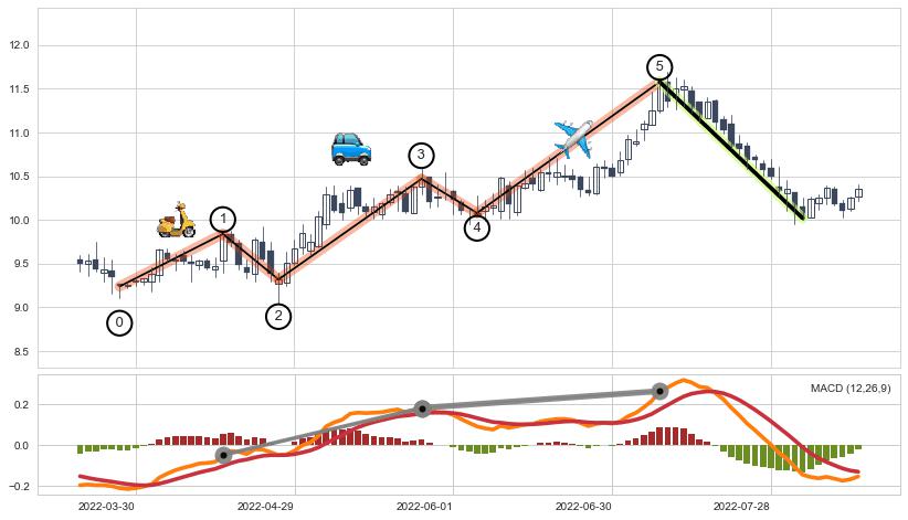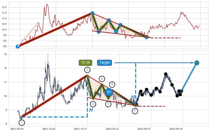 ➣ AI预测: 假定反转启动后, 第❶目标位置(2023-10-04, 8.76)